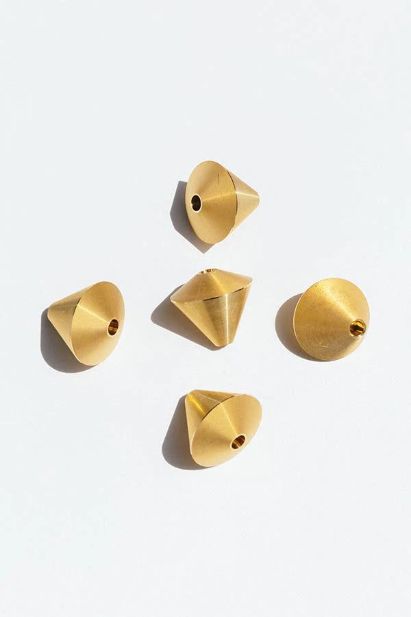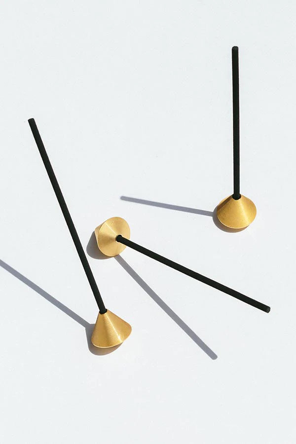 The minimalist design of the holder gives you multiple ways to play. You can place it in an angle, like an acorn on the ground, or you can make it stand up straight. An incense stick can be inserted on either end. While the stand may be small in size, the matte effect of the brass adds as a nice accent to your scene.